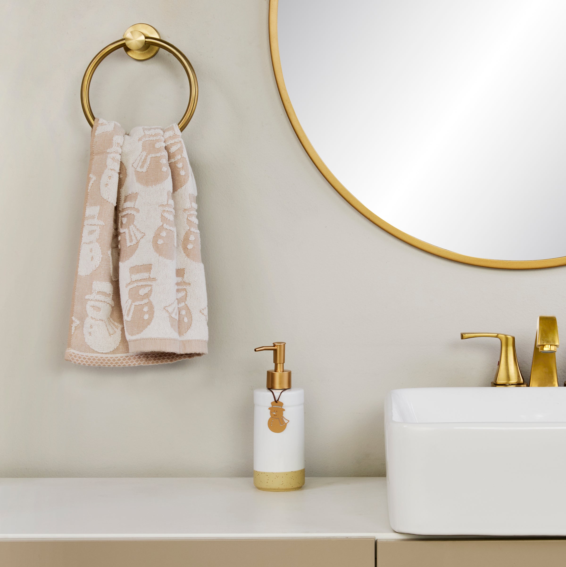 Snowman Jacquard 2-Piece Hand Towel Set, Tan