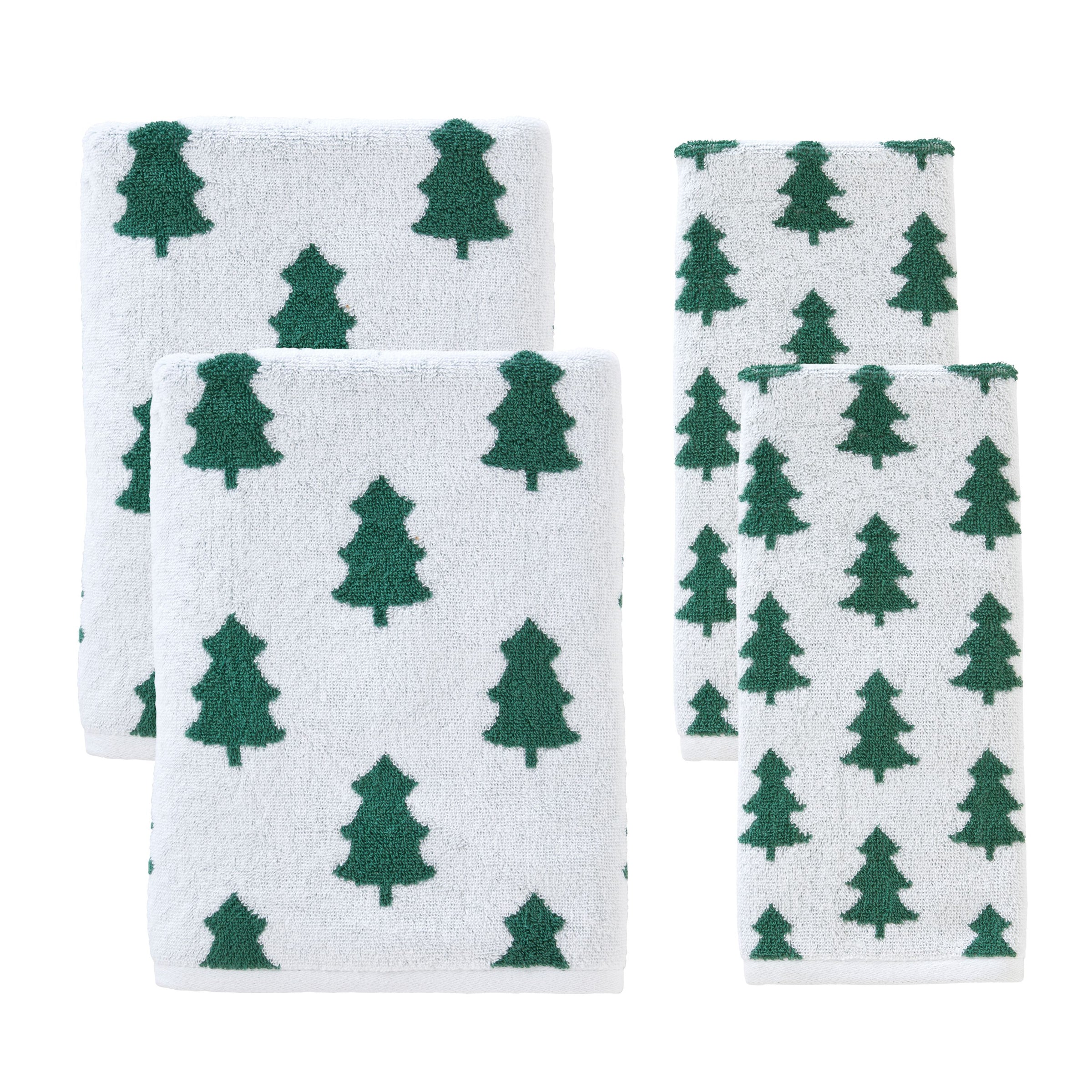 Holiday Trees 4pc Bath & Hand Towel Set, Green/White