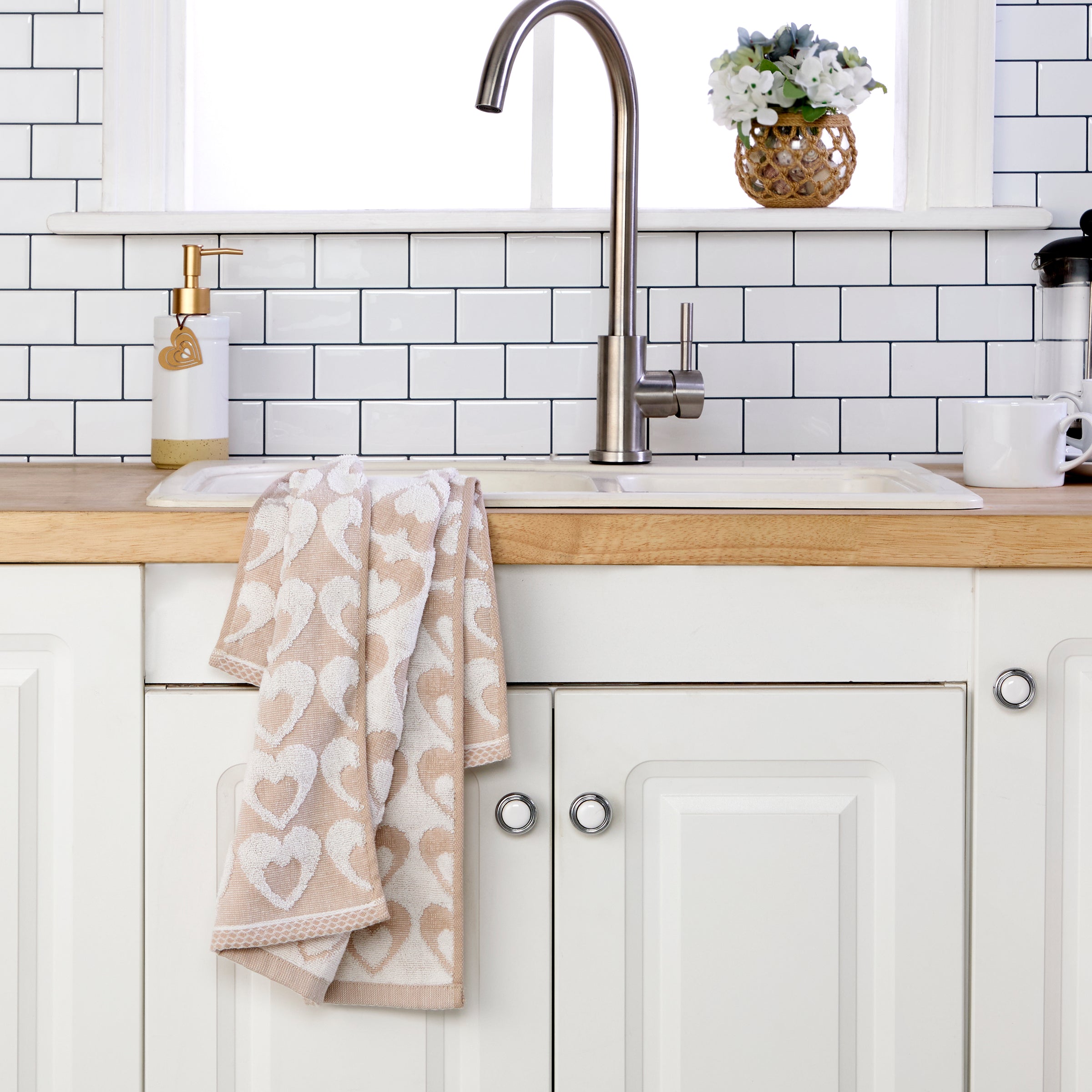 Hearts Jacquard 2-Piece Hand Towel Set, Tan